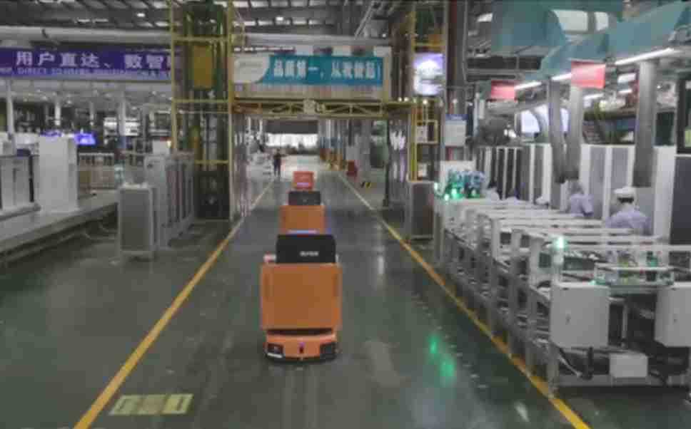 为车载冰箱物流配送打造的智能解决方案,,包含产中物流通过潜伏举升AMR搬运至线边,,,产后成品物流智能仓储,,流程包含产中物流智能齐套入库,,线边安灯叫料AMR智能配送至线边,,成品入库、、出库,,通过无人堆高车机器人,,智能仓储管理替代人工作业管理,,,,实现更高存储、、更高效率、、、、更具柔性化的解决方案。。。。